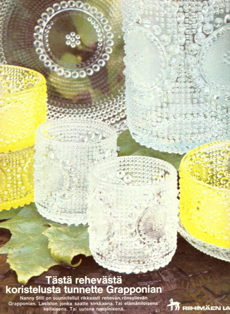 Iittalan tuotannosta v. 1970-76 suurin osa olikin tätä röpelöpintaista lasia.